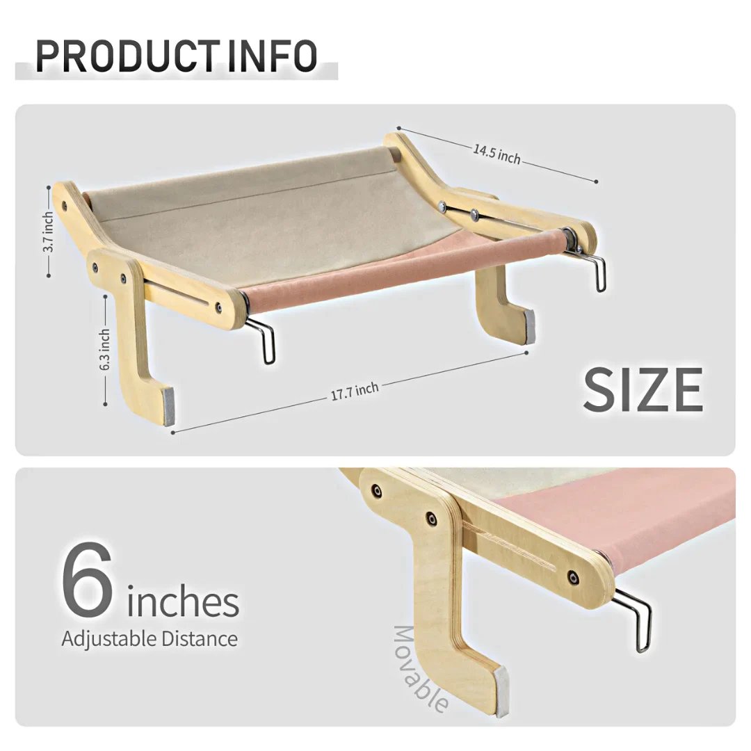 Give your cat a sunny perch without drilling holes or cluttering your space. The Cozy Wooden Hammock securely hooks to sills, bedsides, or furniture edges, offering a peaceful place to nap, stretch, and survey the world—no tools or damage required.
