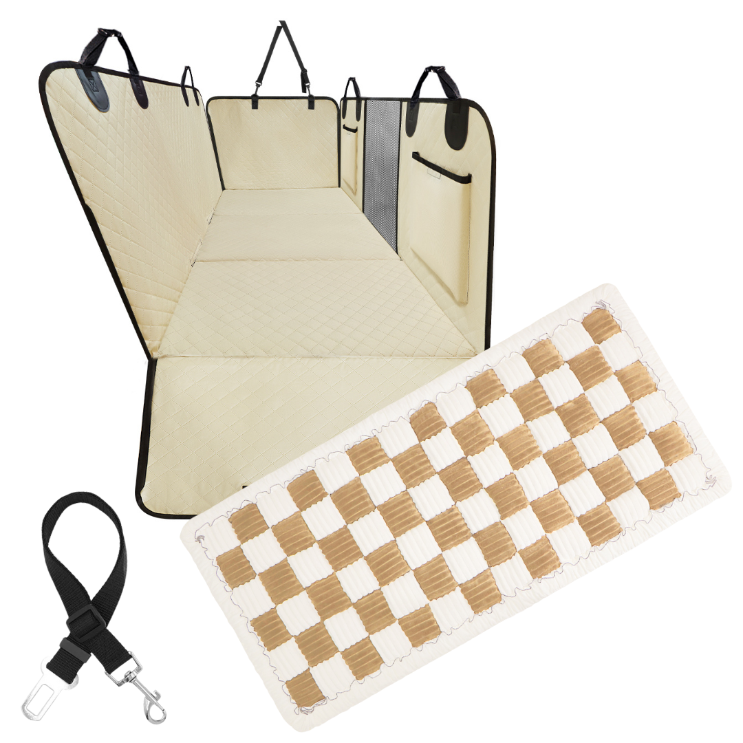 Transform every car ride into a safe and enjoyable adventure with the Ultimate Waterproof Pet Car Hammock. This sturdy, waterproof design ensures that both your vehicle's seats and your furry friend stay protected from dirt, spills, and accidents during every journey. With convenient side flaps, handy storage pockets, and a mesh viewing window, your pet will travel in comfort while you maintain easy access. Plus, enjoy peace of mind with a complimentary dog safety belt for enhanced security.